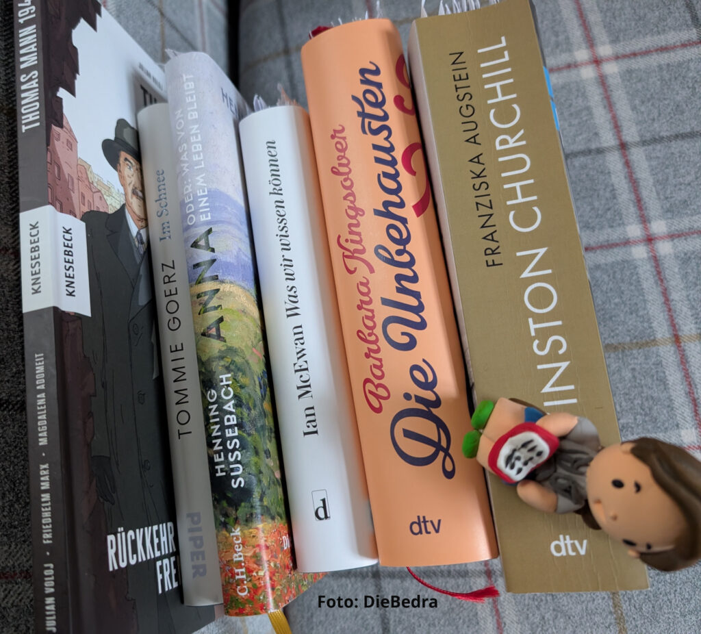 Dank der Verlage, die mir freundlicherweise Rezensionsexemplare zur Verfügung gestellt haben, bin ich auf Bücher gestoßen, die ich vielleicht sonst nicht gelesen hätte. Darunter Barbara Kingsolver „Die Unbehausten„, Henning Sußebach „Anna – oder was von einem Leben bleibt„, Franziska Augstein „Winston Churchill“ oder Tommie Goertz „Im Schnee„.